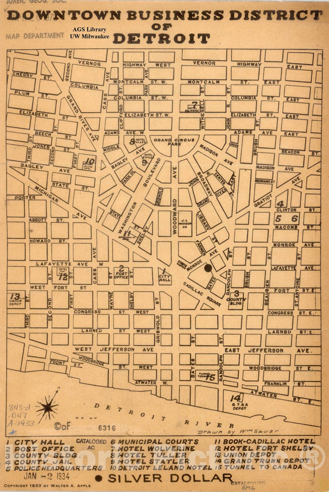Map : Detroit, Michigan 1933, Downtown business district of